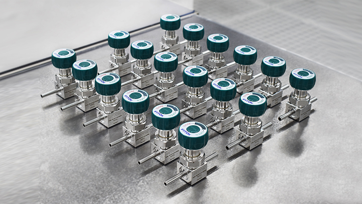 DQ 系列低压手动隔膜阀内部容积小,无死区,颗粒产生少,便于清扫流道。全封闭阀座设计,具有优越的抗膨胀和防污染能力。钴合金材料的隔膜强度高、耐腐蚀,使用寿命长。金属硬密封结构,对外部零泄漏。手柄带有可视窗,便于识别开、关位置。多种端口类型、尺寸及阀座材质可选。与介质接触表面电解抛光,浸润面粗糙度为 5 μin. (0.13 μm),适用高纯及超高纯应用。