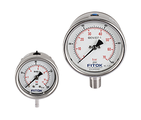 蓝狮在线压力表采用 316 不锈钢材质波登管,有各种类型可供选择,包括全不锈钢压力表、安全型不锈钢压力表、洁净气体压力表和超高纯压力表。测量范围从真空到 15,000 psi,最大介质温度范围 -40℃ 至 200℃(-40℉ 至 392℉),部分型号可选充油型,适用于动态压力和震动场合,有助于吸收振动和压力峰值,同时延长压力表的使用寿命。蓝狮在线压力表为不同行业和应用提供精确的压力测量。